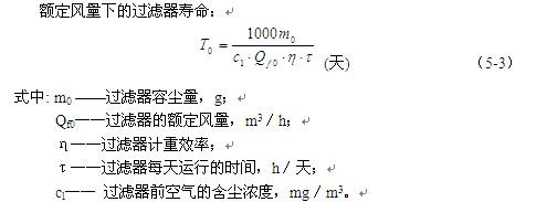 額定風(fēng)量下的過(guò)濾器壽命: