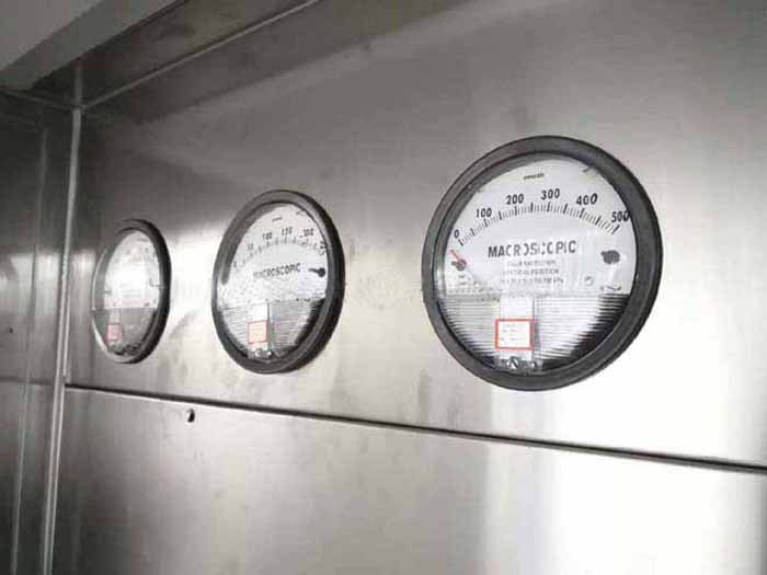 設(shè)備采用垂直單向流的氣流形式,回風(fēng)先通過初效過濾器進(jìn)行預(yù)過濾,將氣流中的大顆粒粉塵粒子處理掉。經(jīng)過預(yù)處理后的空氣,再經(jīng)過高效過濾器進(jìn)行二次過濾,以起到充分保護(hù)高效過濾器的作用。在離心風(fēng)機(jī)提供的壓力下,通過高效過濾器,使之達(dá)到潔凈要求。操作區(qū)與外部環(huán)境的形成相對(duì)負(fù)壓,從而保證此區(qū)域內(nèi)的粉塵不會(huì)擴(kuò)散至室外,起到保護(hù)外部環(huán)境的作用。