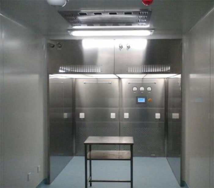 大型負(fù)壓稱量間|稱量棚|稱量亭采用垂直單向流的氣流形式,回風(fēng)先要通過初效過濾器進(jìn)行預(yù)過濾,將氣流中的大顆粒粉塵粒子處理掉,經(jīng)過預(yù)處理后的空氣,再經(jīng)過中效過濾器進(jìn)行二次過濾,以起到充分保護(hù)高效過濾器的作用。稱量亭在離心風(fēng)機(jī)提供的壓力下,通過高效過濾器,使之達(dá)到潔凈要求。